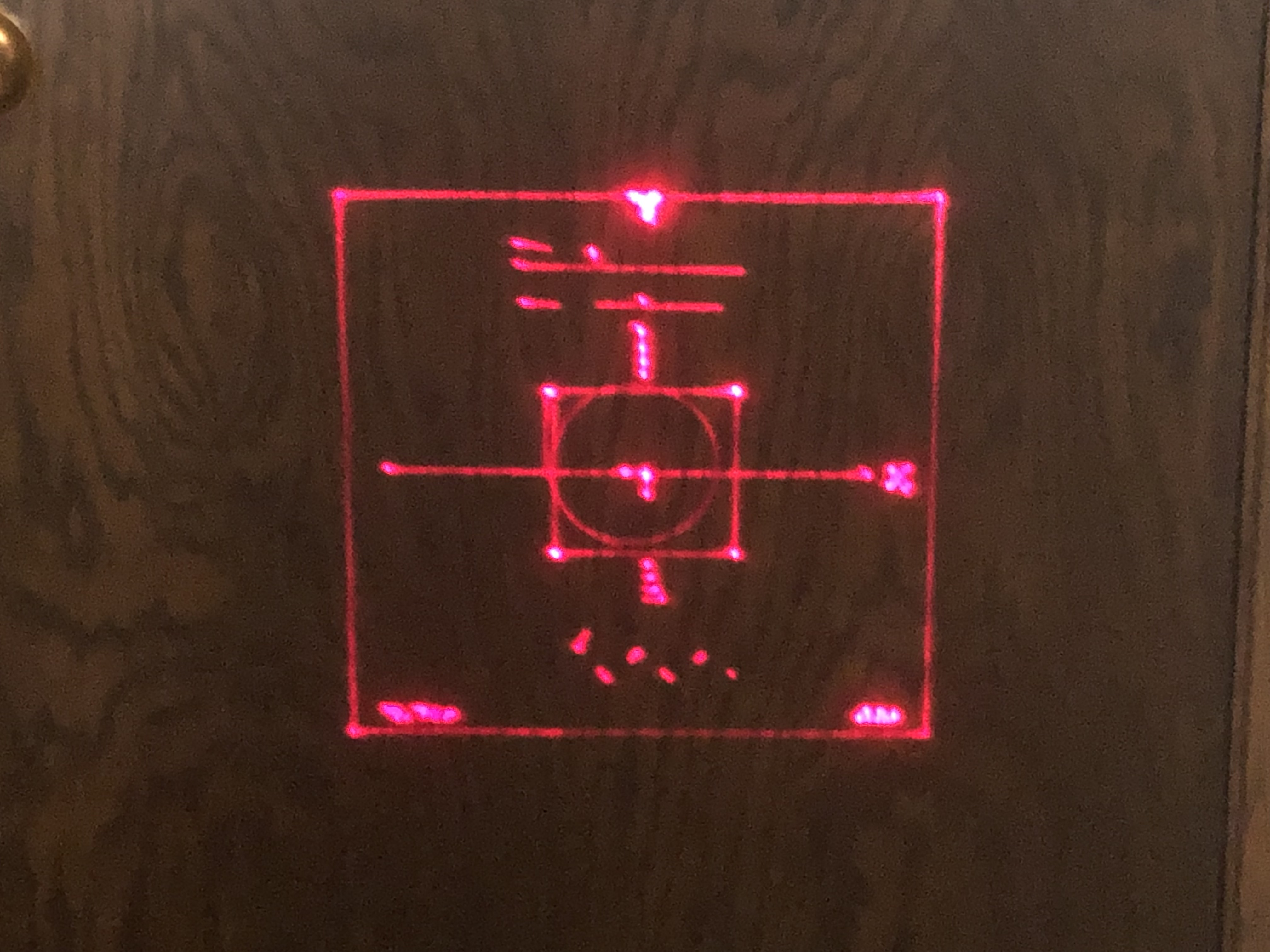 The standard ILDA Test Image above shows shows poor resolution due to the low amplification and large beam diameter of my cheap laser module, but shows proper function with a small laser "blanking" timing issue I can live with.