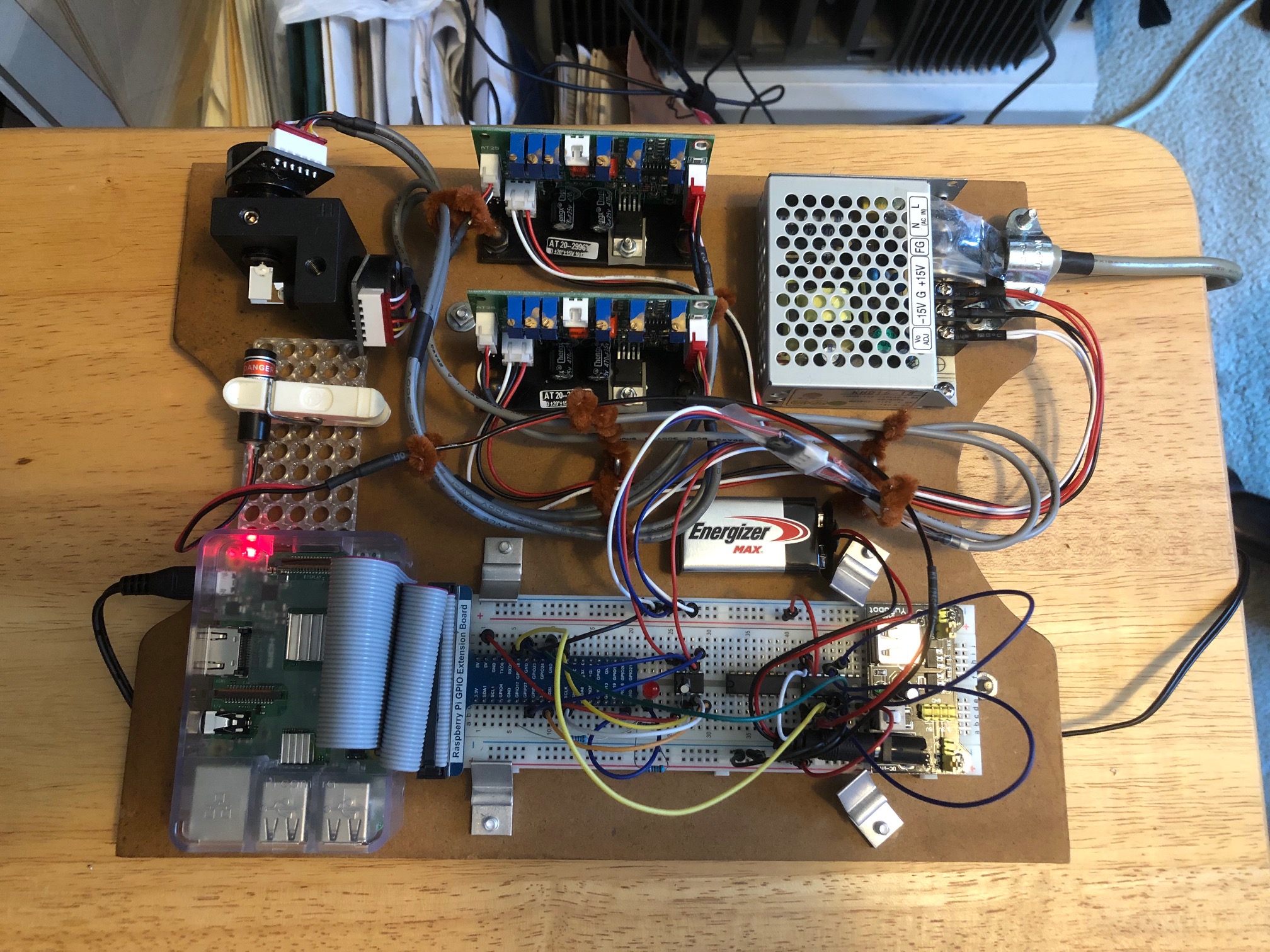 It is controlled by a Raspberry Pi 3B+ programmed completely in Python.