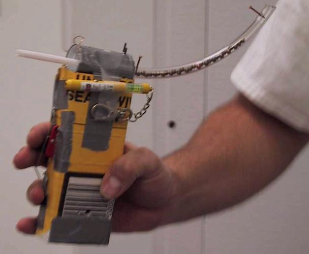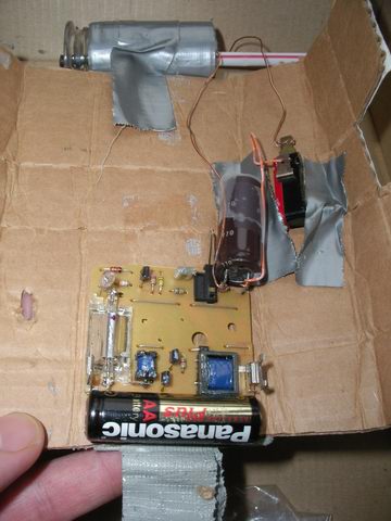 don't be fooled, the circuit builds up 300 volts across the capacitor!!! It can launch BBs about 20 feet and stick small nails into styrofoam.