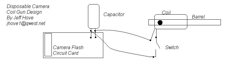 The coil-gun is simply an electromagnet coil powered by a short high-voltage pulse generated by the flash unit of a disposable camera.
