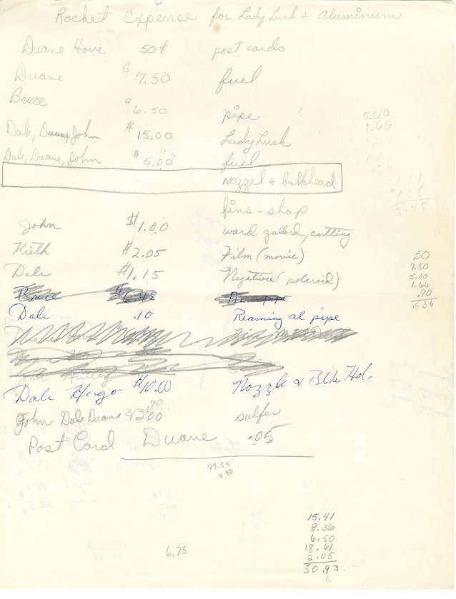 Used powdered Zinc/Sulfur propellant. Chemicals bought by Duane's older brother Paul who was by then a college student at U of MN.