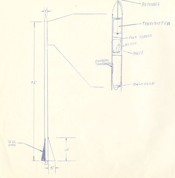 White rocket was painted stainless steel with the mouse in the nose cone.