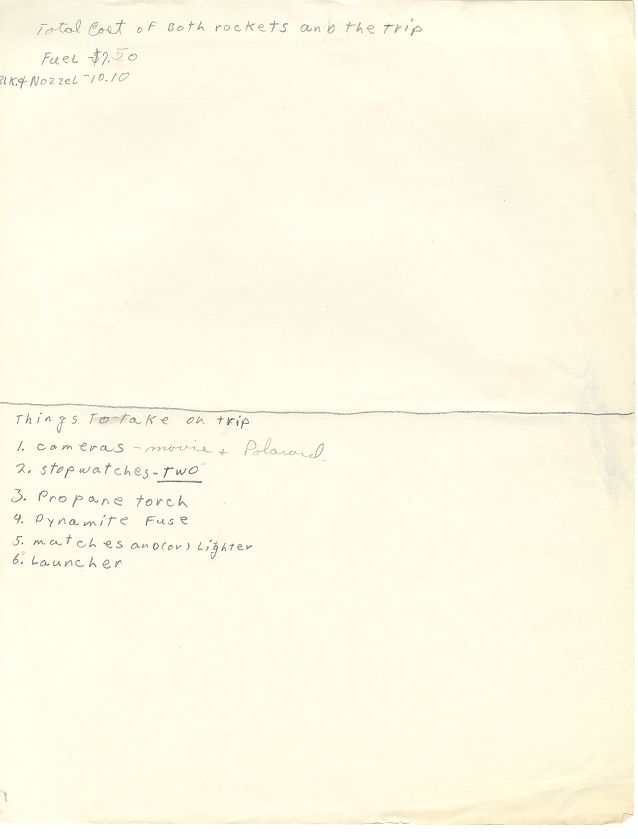 "Aluminum Rocket" - mentioned in South Dakota trip plan but never launched.