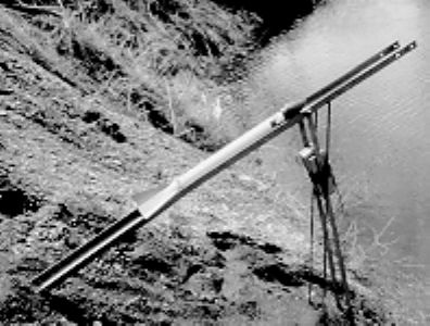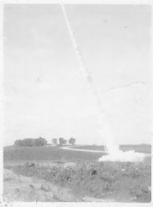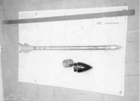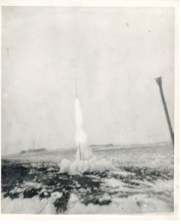 The launcher consisted of a piece of angle iron planted in the ground at a slight angle. Initially used fuse to light rockets but this made the time of launch