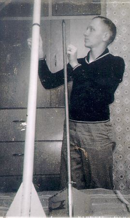 Pre-Flight : Photo14g.jpg Dale in kitchen with rocket "Essay on"