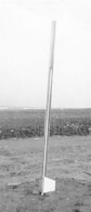 2. photo24.jpg Rocket on launcher at 45 degrees (later flights were always higher angles).