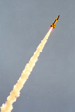 The launch was magnificent but the rocket bound up on the upper rail extension, ripping it off the launch pad and causing the rocket to veer towards the crowd.